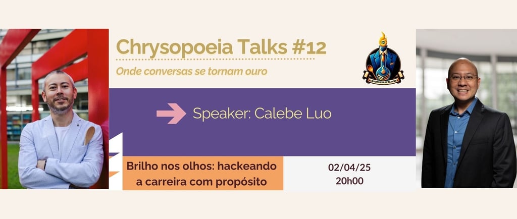 No episódio 12 do Chrysopoeia Talks, conversei com Calebe Luo, um dos nomes mais respeitados quando o assunto é carreira com propósito no LinkedIn. Muito além dos algoritmos e da lógica da produtividade, nossa conversa mergulhou em temas urgentes: o que é ser humano em tempos de IA? Como resgatar o brilho nos olhos em meio à aceleração? Qual é o lugar da arte, da escuta e da presença no mundo do trabalho?